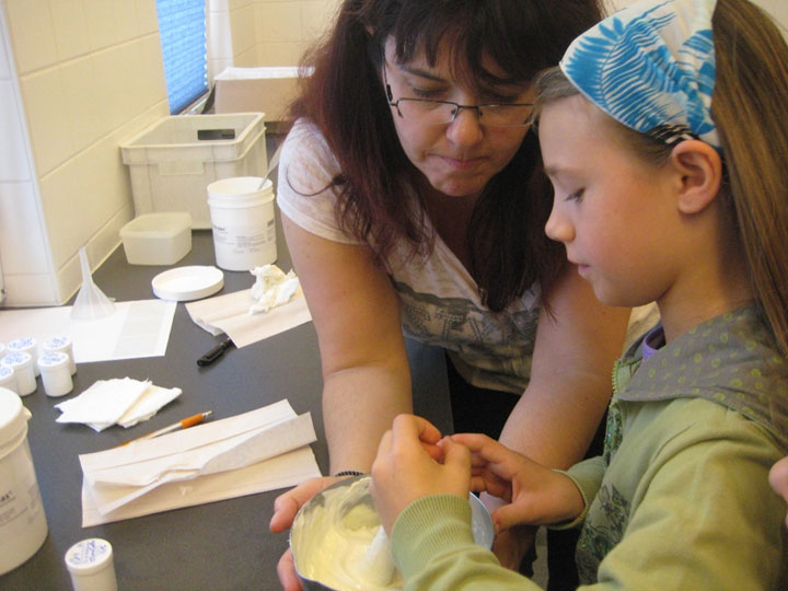 Ein wichtiger Aufgabenbereich der Apotheke ist das Rühren von Salben nach ärztlicher Verschreibung. Gemeinsam mit Maria Stubauer wurde eine pflegende Olivenölsalbe angefertigt. Jeder durfte dabei selbst Hand anlegen und bekam auch für zu Hause eine Salbe mit – denn nichts ist so toll auf der Haut wie eine selbstgemachte Creme!